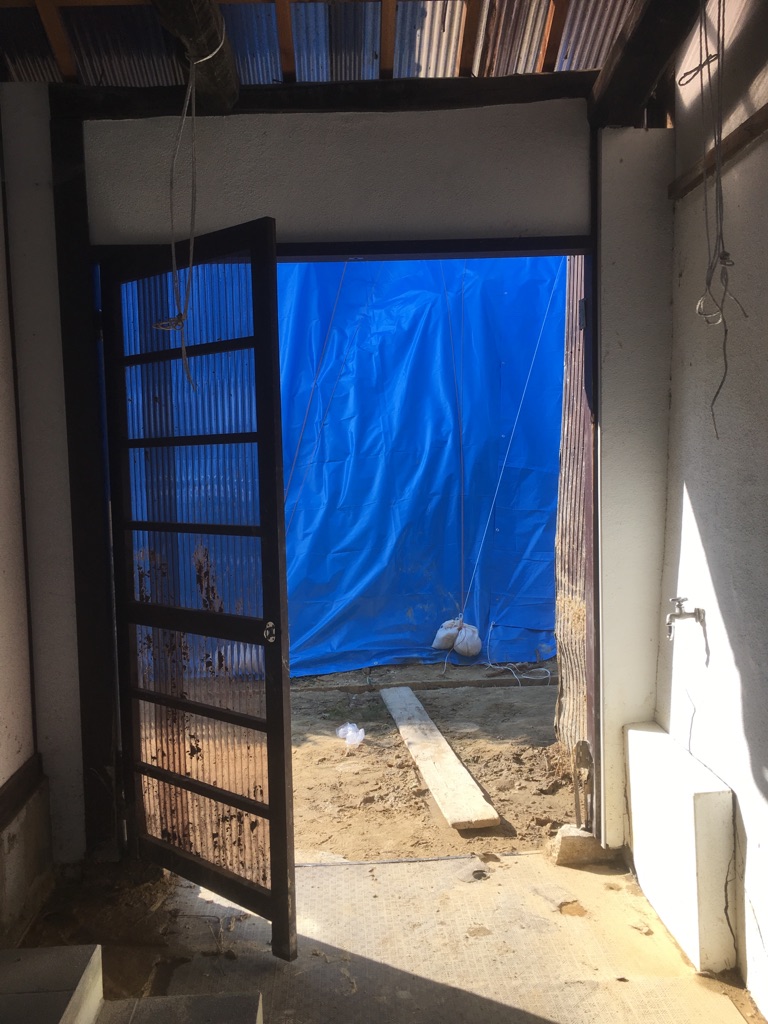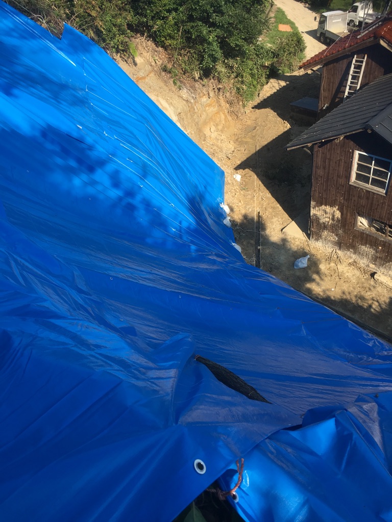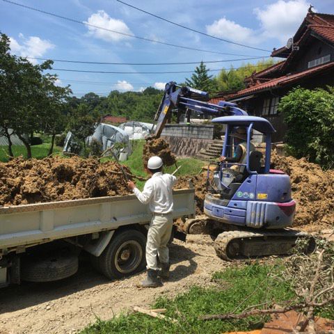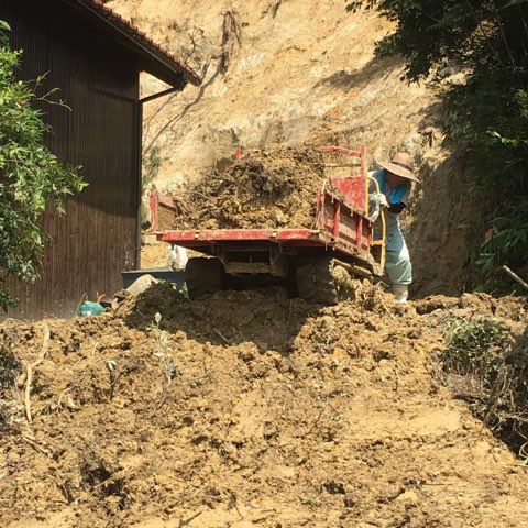 こちらのお宅は、裏山が崩れ大量の土砂が流れ込んできているため、土砂を取り出す作業を行いました。