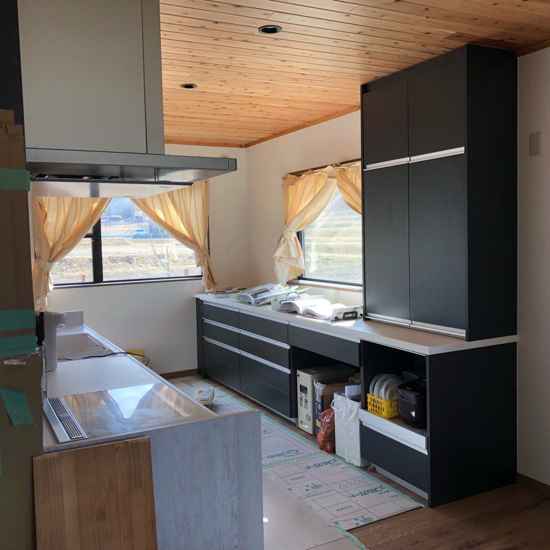 キッチンも使い勝手を良くし、階段下にあった収納の入り口は 開けやすい位置に 変更しました。