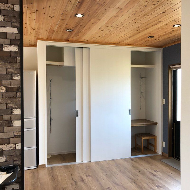 プチ書斎を 作り 玄関 正面スペースに クローゼットを造ました。