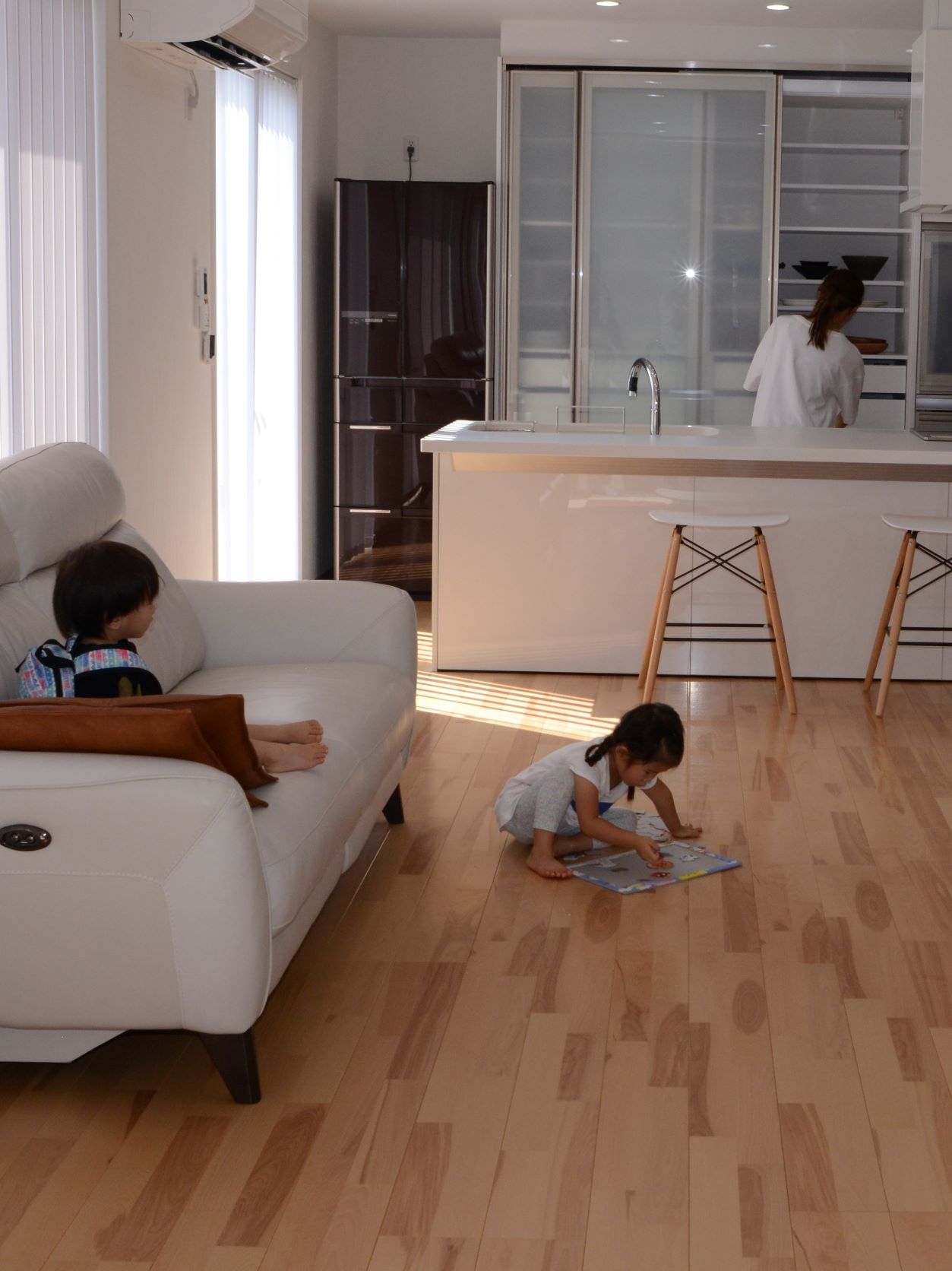 冬の寒さが厳しい地域ですが、外気を断熱し、床暖房システムを導入。足元からほんのり暖かく、乾燥知らずで、快適に過ごしていただけそうです。